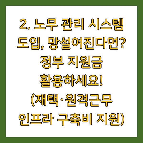 2. 노무 관리 시스템 도입, 망설여진다면? 정부 지원금 활용하세요! (재택·원격근무 인프라 구축비 지원)